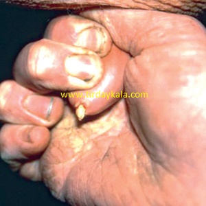 دراین بیماری، بعد از جدا کردن خرچنگی شیردوشی هنوز یکی از کارتیه ها از شیر پر است. با دوشش با دست، در ابتدا شیر به راحتی خارج می شود اما ناگهان این جریان قطع می شود. این قطعات نخود مانند، بافت فیبروزی در ابعاد و رنگ های مختلف می باشند. برای درمان می بایست با مشاوره با دامپزشک اقدام به تخلیه و خارج نمودن نخود از کانال پستان نمود.