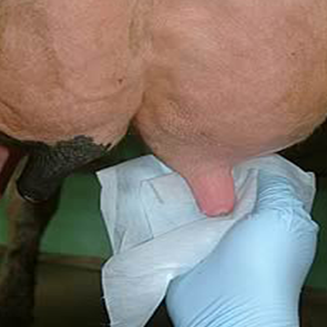 4- خشک کردن سرپستانها: پس از استفاده از محلول ضدعفونیکننده، باید سرپستانها با حوله یا دستمال یکبار مصرف کاملاً خشک شوند تا مواد ضدعفونیکننده وارد لاینر و شیر نشود. در صورتی که از مواد ضدعفونیکننده پیشدوشی استفاده میکنید، دستورالعملهای تولیدکننده را در خصوص زمان لازم برای اثرگذاری پیش از پاک کردن محلول رعایت کنید