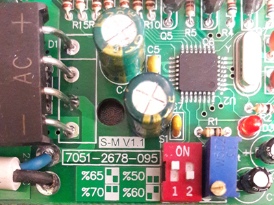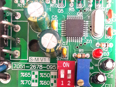 ابتدا برد را از طریق اتصال به ترانس پولساتور روشن کنید تا صفحه دیجیتال نمایشگر، وضعیت را نمایش دهد. سپس با افزایش مقدار پتانسیومتر، این عدد را به 120 و یا عدد مورد نظر کارشناس تغییر دهید. این عدد با تغییر در وضعیت پتانسیومتر بر روی نمایشگر نمایش داده می شود.